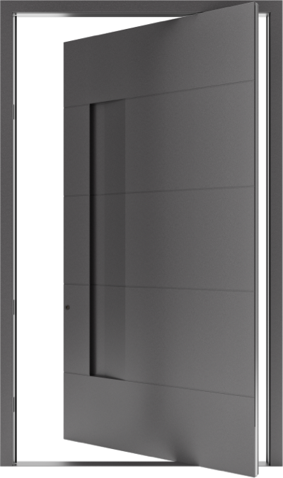 Model PIVOT 02, z innowacyjnym systemem otwierania, z pewnością sprosta oczekiwaniom najbardziej wymagających klientów. To aluminiowe wypełnienie ozdobione jest poziomymi, regularnymi frezowaniami, a przełamana płaszczyzna panelu przechodzi łagodnie we wnękę stanowiącą zintegrowany uchwyt drzwiowy.